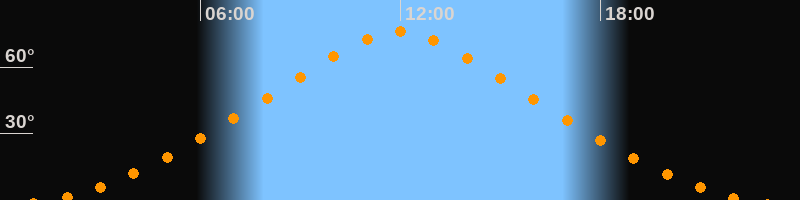 | Höchster Stand (Kulmination) | 11:57 Uhr (h = 76°) |