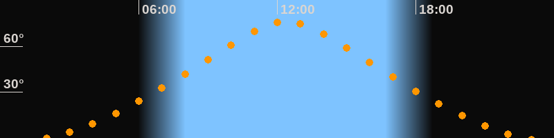 | Höchster Stand (Kulmination) | 12:23 Uhr (h = 76°) |