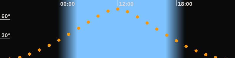 | Höchster Stand (Kulmination) | 11:55 Uhr (h = 76°) |