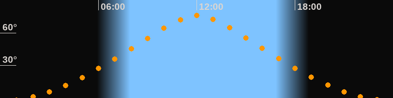 | Höchster Stand (Kulmination) | 12:01 Uhr (h = 76°) |