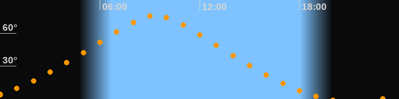 | Höchster Stand (Kulmination) | 09:20 Uhr (h = 76°) |