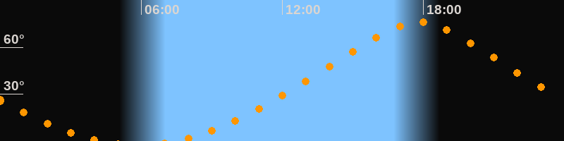 | Höchster Stand (Kulmination) | 17:48 Uhr (h = 76°) |