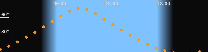 | Höchster Stand (Kulmination) | 09:13 Uhr (h = 76°) |