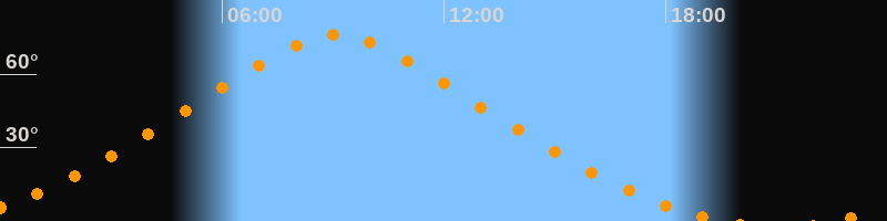 | Höchster Stand (Kulmination) | 09:05 Uhr (h = 76°) |