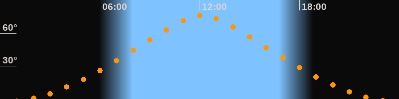 | Höchster Stand (Kulmination) | 12:08 Uhr (h = 76°) |