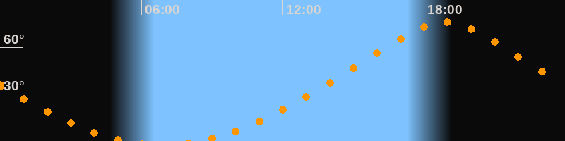 | Höchster Stand (Kulmination) | 18:53 Uhr (h = 76°) |