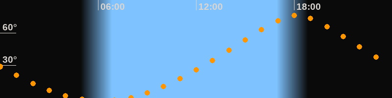 | Höchster Stand (Kulmination) | 18:09 Uhr (h = 76°) |