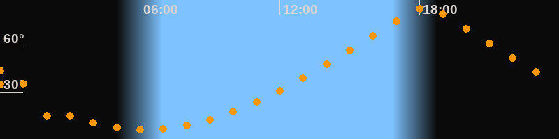 | Höchster Stand (Kulmination) | 18:14 Uhr (h = 84,9°) |