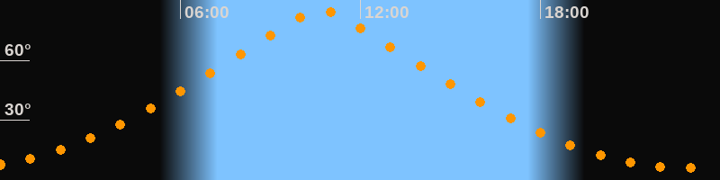 | Höchster Stand (Kulmination) | 10:41 Uhr (h = 84,9°) |