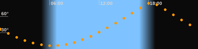 | Höchster Stand (Kulmination) | 18:19 Uhr (h = 84,9°) |