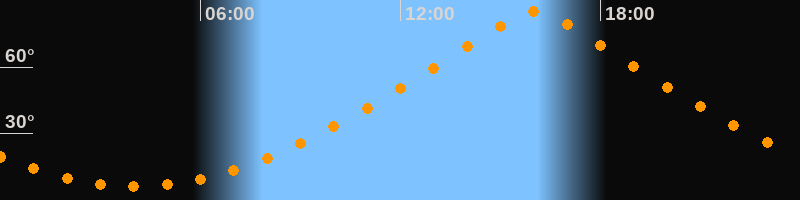 | Höchster Stand (Kulmination) | 16:02 Uhr (h = 84,9°) |