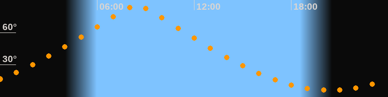 | Höchster Stand (Kulmination) | 08:26 Uhr (h = 84,9°) |