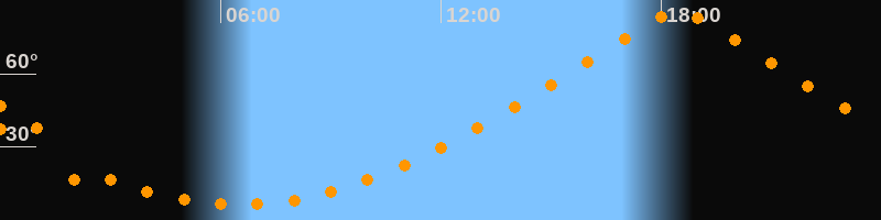| Höchster Stand (Kulmination) | 18:28 Uhr (h = 84,9°) |