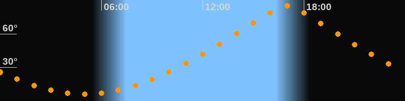 | Höchster Stand (Kulmination) | 16:59 Uhr (h = 84,9°) |