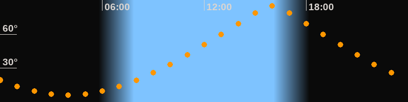 | Höchster Stand (Kulmination) | 16:00 Uhr (h = 84,9°) |
