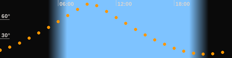 | Höchster Stand (Kulmination) | 09:20 Uhr (h = 84,9°) |
