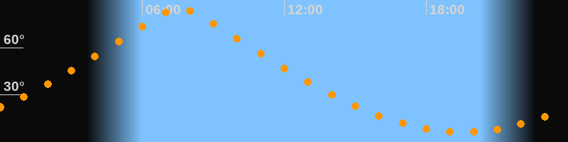 | Höchster Stand (Kulmination) | 07:34 Uhr (h = 84,9°) |