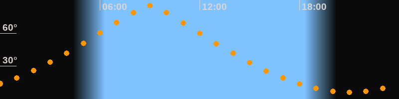 | Höchster Stand (Kulmination) | 08:59 Uhr (h = 84,9°) |