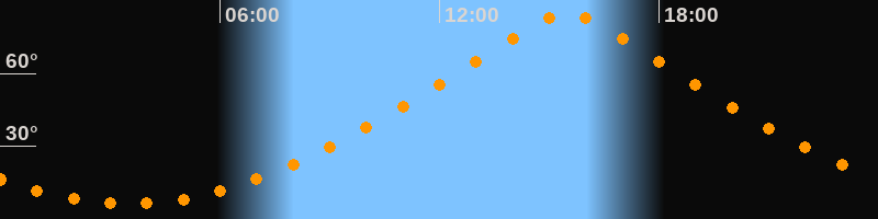 | Höchster Stand (Kulmination) | 15:29 Uhr (h = 84,9°) |