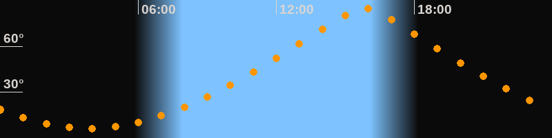 | Höchster Stand (Kulmination) | 15:50 Uhr (h = 84,9°) |