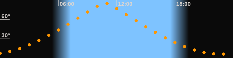| Höchster Stand (Kulmination) | 10:46 Uhr (h = 84,9°) |
