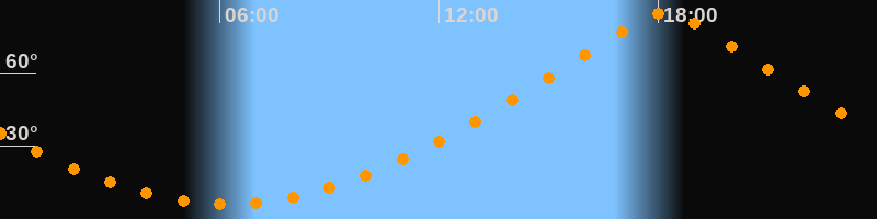| Höchster Stand (Kulmination) | 18:11 Uhr (h = 84,9°) |