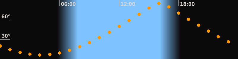 | Höchster Stand (Kulmination) | 16:05 Uhr (h = 84,9°) |