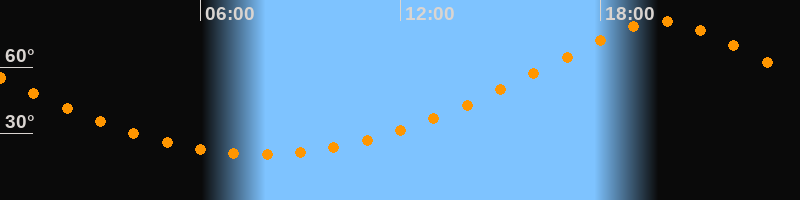 | Höchster Stand (Kulmination) | 19:51 Uhr (h = 80,8°) |