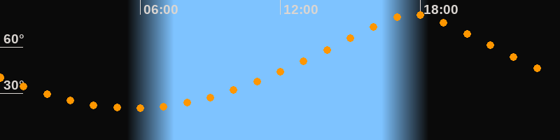 | Höchster Stand (Kulmination) | 17:41 Uhr (h = 80,8°) |