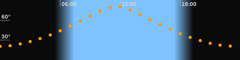 | Höchster Stand (Kulmination) | 11:39 Uhr (h = 80,8°) |