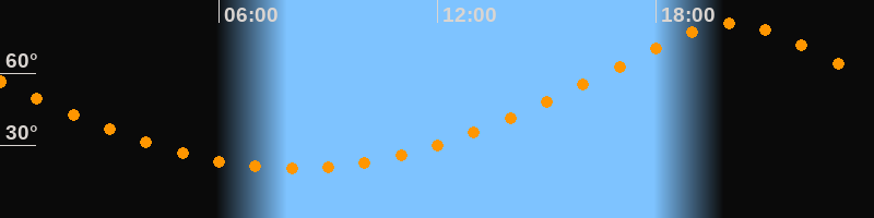 | Höchster Stand (Kulmination) | 20:04 Uhr (h = 80,8°) |
