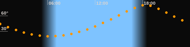 | Höchster Stand (Kulmination) | 18:21 Uhr (h = 80,8°) |