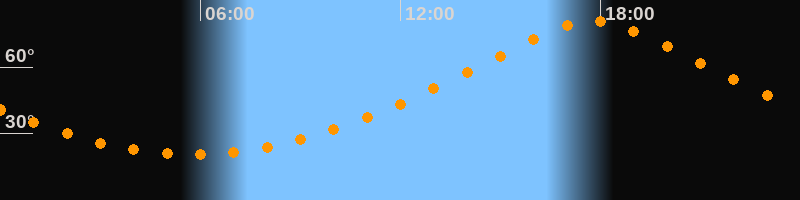 | Höchster Stand (Kulmination) | 17:46 Uhr (h = 80,8°) |
