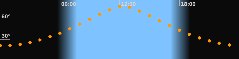 | Höchster Stand (Kulmination) | 12:20 Uhr (h = 80,8°) |