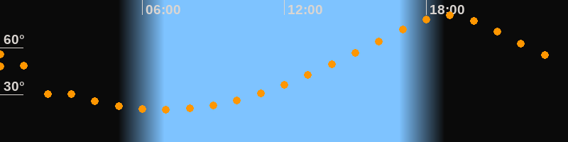 | Höchster Stand (Kulmination) | 18:54 Uhr (h = 80,8°) |