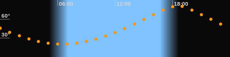 | Höchster Stand (Kulmination) | 18:31 Uhr (h = 80,8°) |