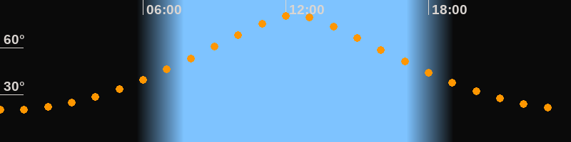 | Höchster Stand (Kulmination) | 12:21 Uhr (h = 80,8°) |
