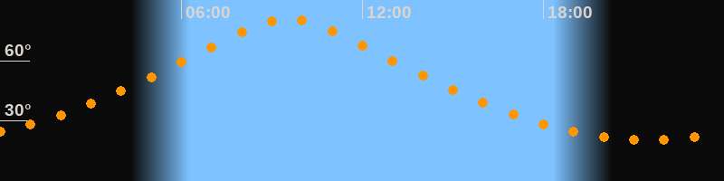 | Höchster Stand (Kulmination) | 09:32 Uhr (h = 80,8°) |