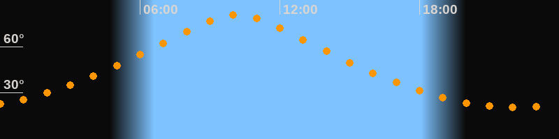 | Höchster Stand (Kulmination) | 10:08 Uhr (h = 80,8°) |