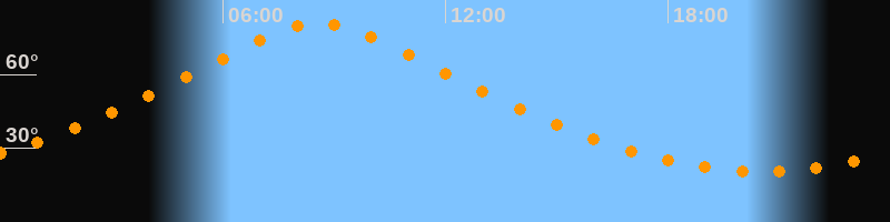 | Höchster Stand (Kulmination) | 08:36 Uhr (h = 80,8°) |