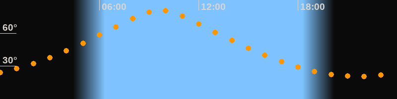 | Höchster Stand (Kulmination) | 09:40 Uhr (h = 80,8°) |