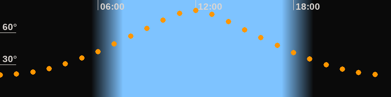 | Höchster Stand (Kulmination) | 11:54 Uhr (h = 80,8°) |