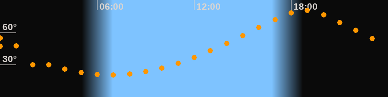| Höchster Stand (Kulmination) | 18:48 Uhr (h = 80,8°) |