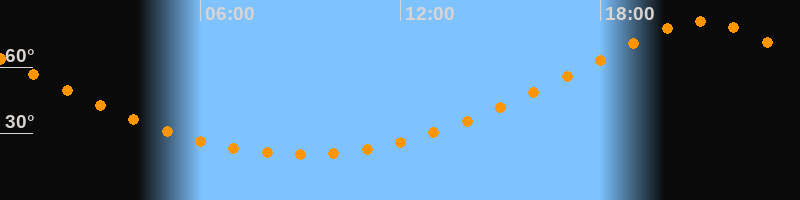| Höchster Stand (Kulmination) | 21:02 Uhr (h = 80,8°) |