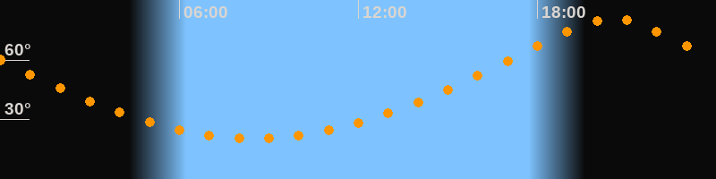 | Höchster Stand (Kulmination) | 20:30 Uhr (h = 80,8°) |