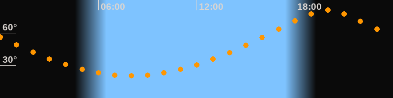 | Höchster Stand (Kulmination) | 19:59 Uhr (h = 80,8°) |