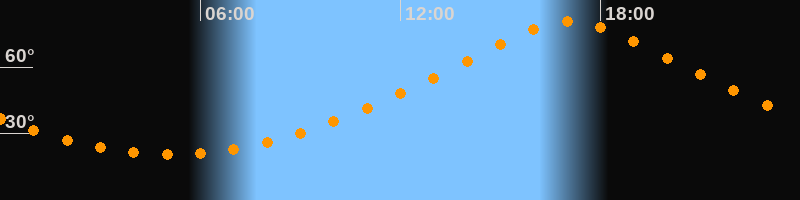 | Höchster Stand (Kulmination) | 17:06 Uhr (h = 80,8°) |