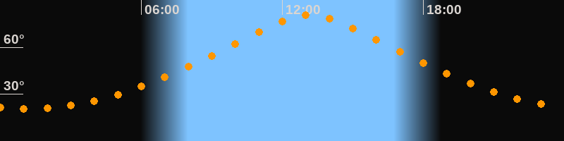| Höchster Stand (Kulmination) | 13:10 Uhr (h = 80,8°) |