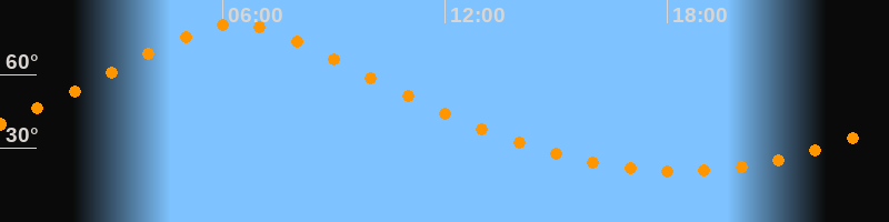 | Höchster Stand (Kulmination) | 06:21 Uhr (h = 80,8°) |