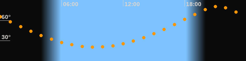 | Höchster Stand (Kulmination) | 21:14 Uhr (h = 80,8°) |